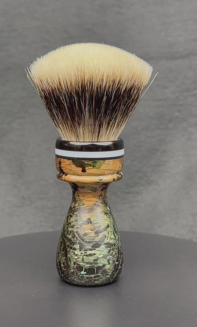 Elevate your shave with this exclusive, handcrafted brush made from stabilized red oak—the same wood used in our original Distiller brush release. Each of these three limited edition brushes features a unique resin pattern in shades of turquoise and green, echoing the rich, earthy tones of The Distiller scent.
