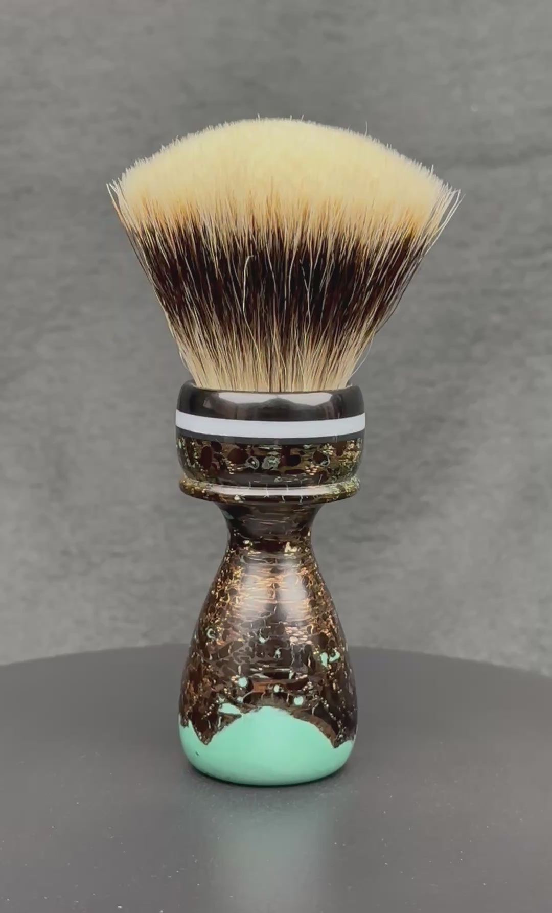 Elevate your shave with this exclusive, handcrafted brush made from stabilized red oak—the same wood used in our original Distiller brush release. Each of these three limited edition brushes features a unique resin pattern in shades of turquoise and green, echoing the rich, earthy tones of The Distiller scent.